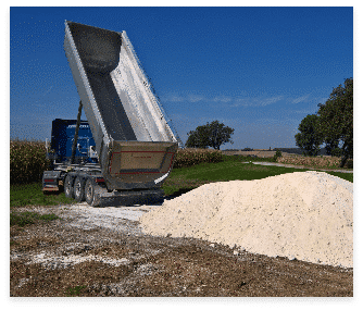 Uskladnenie v sile pre vápenaté materiály. Ak je zabránené kontaktu s vodou, je možné suchú vápencovú múku skladovať bez ujmy niekoľko rokov. Preskladnenie v sile nie je nevyhnutnosťou – vápencovú múku je možné priamo z cisterny plniť do šnekového aplikátora pre suché práškové materiály. Šírka aplikácie zvyčajne 6-15 m, v závislosti od druhu aplikátora a šírky aplikačných ramien.